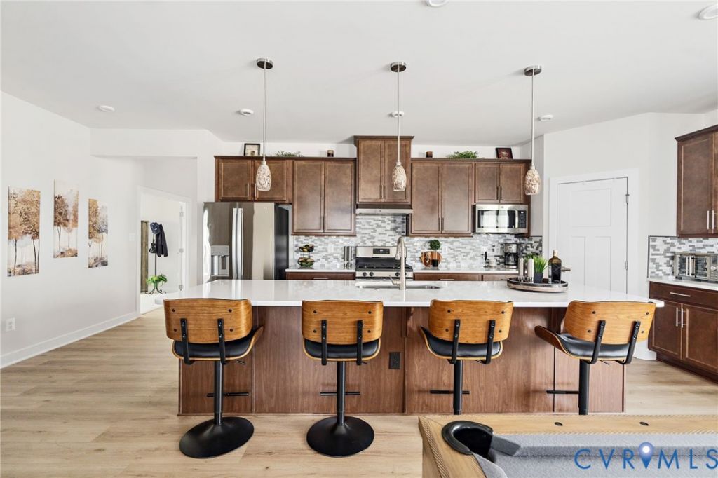 Welcome to 7683 Autumn Leaves Lane in The Estates at the Groves of New Kent, a premiere 55+ community offering world class amenities and a low maintenance lifestyle where your yard work is handled for you! This stunning Palladio 2 model offers the perfect blend of modern luxury and effortless main level living. Designed for those who value both style and functionality. The sellers have masterfully elevated the home with designer and technological enhancements. The main level welcomes you with a warm foyer, offering access to the guest wing and a quiet office with double french doors.The heart of the home is a kitchen that radiates style featuring Carrera quartz counters, an 11 ft center island, custom marble backsplash, upgraded pendant lighting, walk-in pantry, cabinet organizers and pull-outs.The kitchen flows naturally into the sunlit dining area and expansive family room anchored by a gas fireplace. Retreat to the main-level primary suite with large walk-in closet and en suite bathroom complete with a roman shower featuring dual shower heads. The secluded staircase leads you to a large loft area perfect for a second living area or media room as well an additional bedroom/ bathroom and storage area.The home features whole-house water filtration/surge protection and programmable smart lighting/dimmers. Enjoy the east-facing, covered, screened-in patio, perfect for your bug-free enjoyment as well as the spacious 26x13 outdoor patio. Professionally landscaped featuring Japanese Maples and Crepe Myrtles, offering beauty as well as privacy. Enjoy access to two clubhouses, a zero-entry pool, fitness center, pickleball, bocce ball, community garden and about every club and activity you can imagine! Spend an afternoon at the New Kent Winery/Brewery, play a round of championship golf at the Club at Viniterra or take your four legged friend for a trip to Pine Fork Park's dog runs. A prime location, just one mile from I-64 provides a short drive to Williamsburg and Richmond.